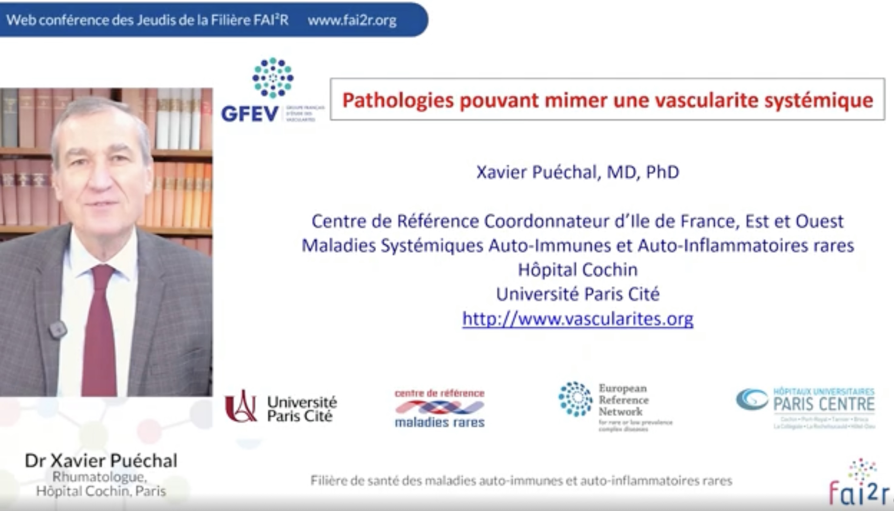 Webconférence du Pr Xavier Puéchal sur les pathologies mimant une vascularite, à visualiser en cliquant ici.